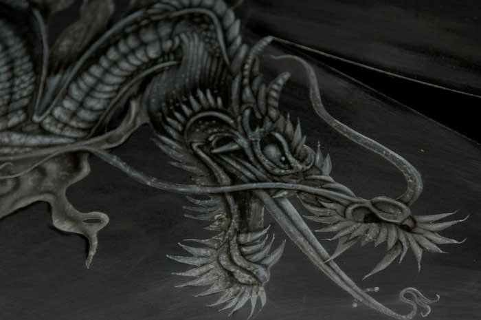 The first four images of dragons designs were airbrush painted on a minivan shown on MTV's Pimp My Ride. The green dragon designs appear on a motorcycle tank and fender. Mythical creatures such as dragons are very popular designs for automobiles, motorcycles, computers and more. Call Bad Ass Paint at 1-310-594-6730 for a professionally airbrush painted fantasy design.