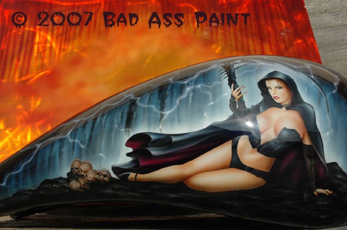 Also see our fantasy art work. Call Bad Ass Paint at 1-310-594-6730 for custom airbrush paint work for your motorcycle, automobile or other metal or fiberglass items.