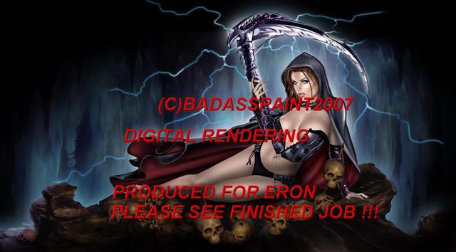 Bad Ass Paint will create beautiful digital renderings of artwork for you to see BEFORE your motorcycle, bike, car or other metal or fiberglass item is painted. You can make any changes in the design stage before your item is painted to ensure your dream design. Call Bad Ass Paint at 1-310-594-6730 for digital renderings and custom airbrush paint work.